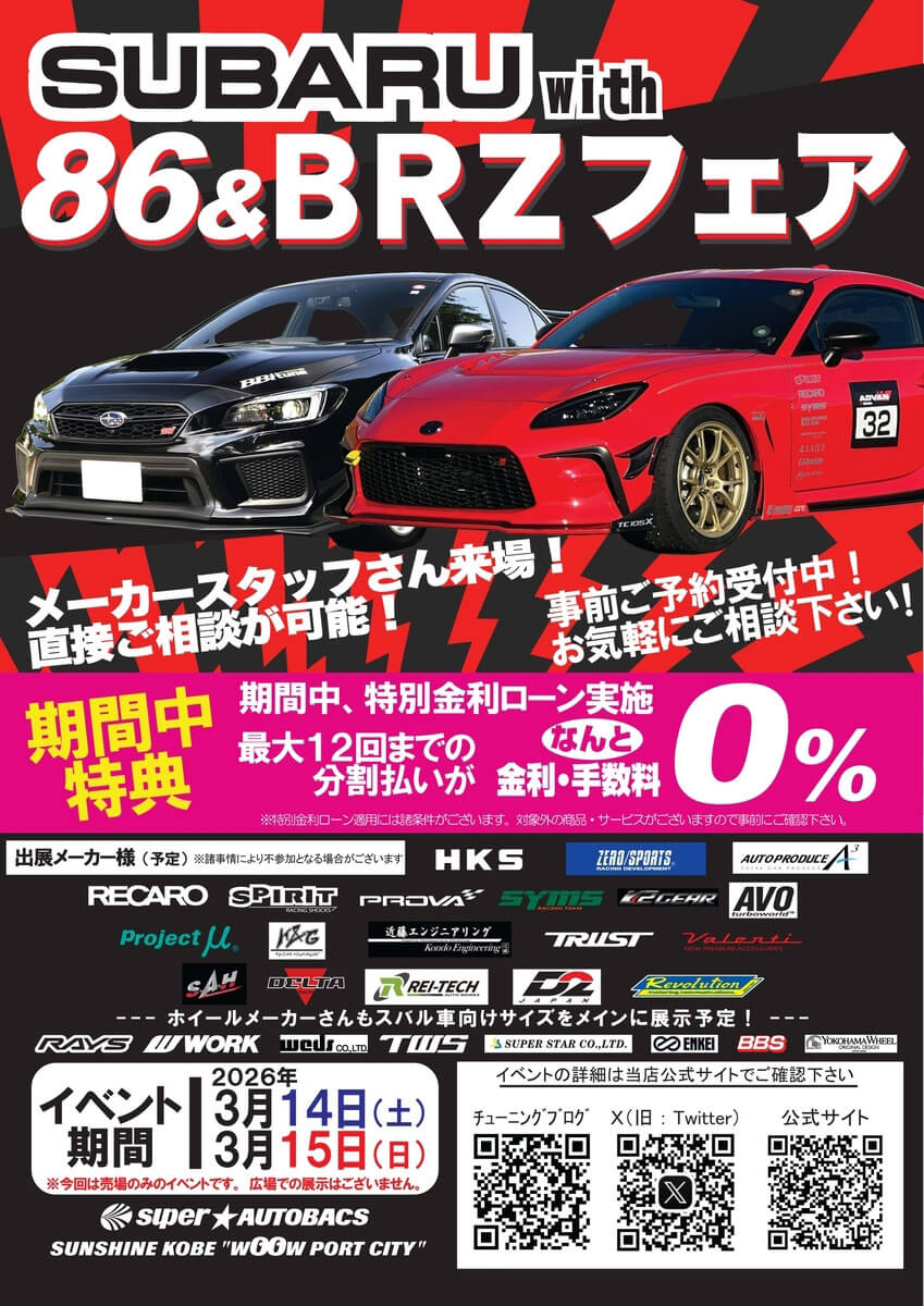 3月14日(土)・15日(日)の2日間に「スーパーオートバックスサンシャイン神戸店」にて