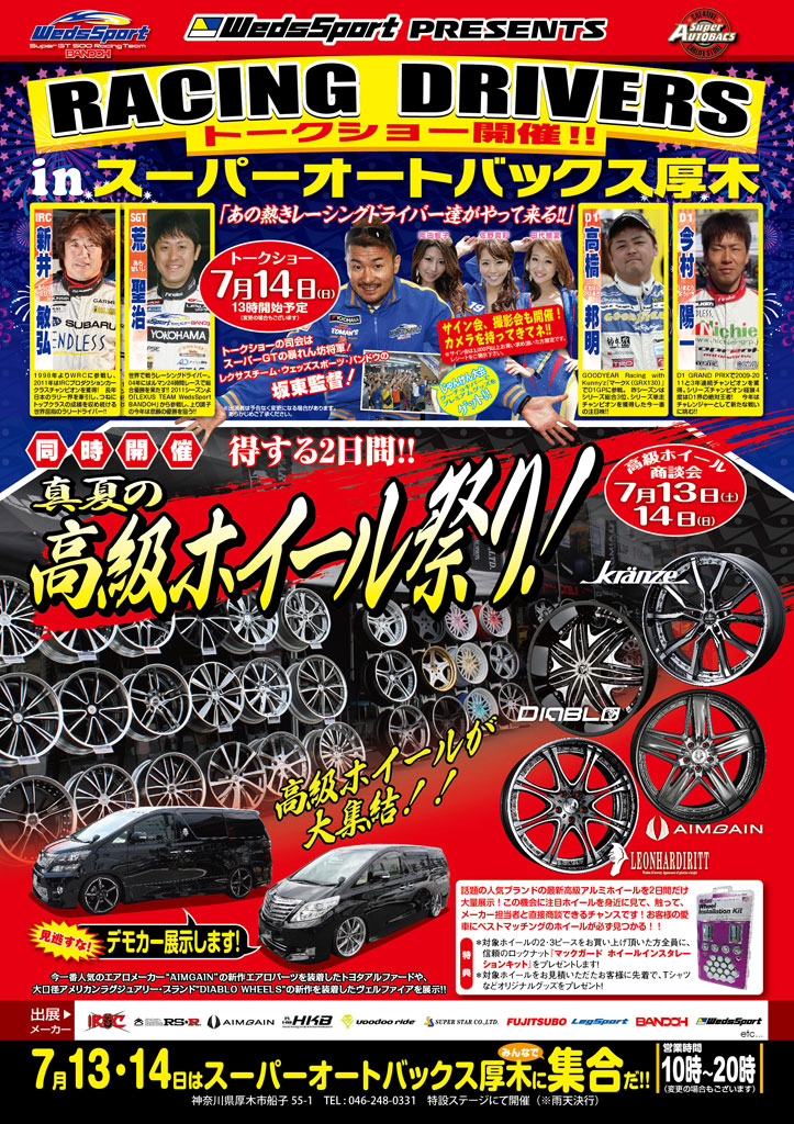 | 開催場所 | : | スーパーオートバックス厚木店 神奈川県厚木市船子55-1 TEL:046-248-0331 |