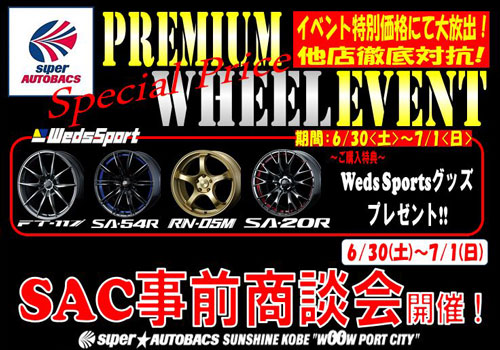 スーパーオートバックスサンシャイン神戸内ウェッズ特設コーナーにてアルミホイールセットの特別商談会を開催致します。