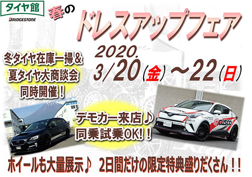 毎年恒例、春のドレスアップフェアが今年もタイヤ館上越店にて開催されます。