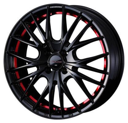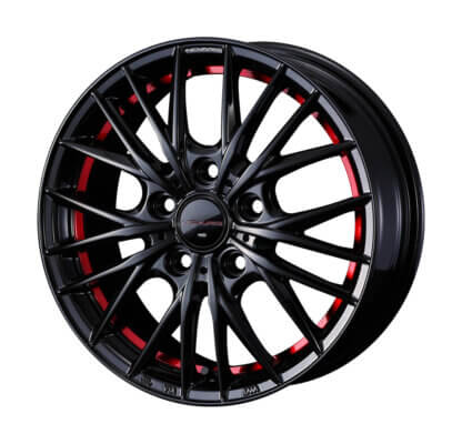 ブラックSCマシニングは、ブラック塗装をベースにリム外周部切削とスポーク角をマシニング加工した特長のある色目。マシニングする事によりブラック塗装とのコントラストを強調させた塗装仕様